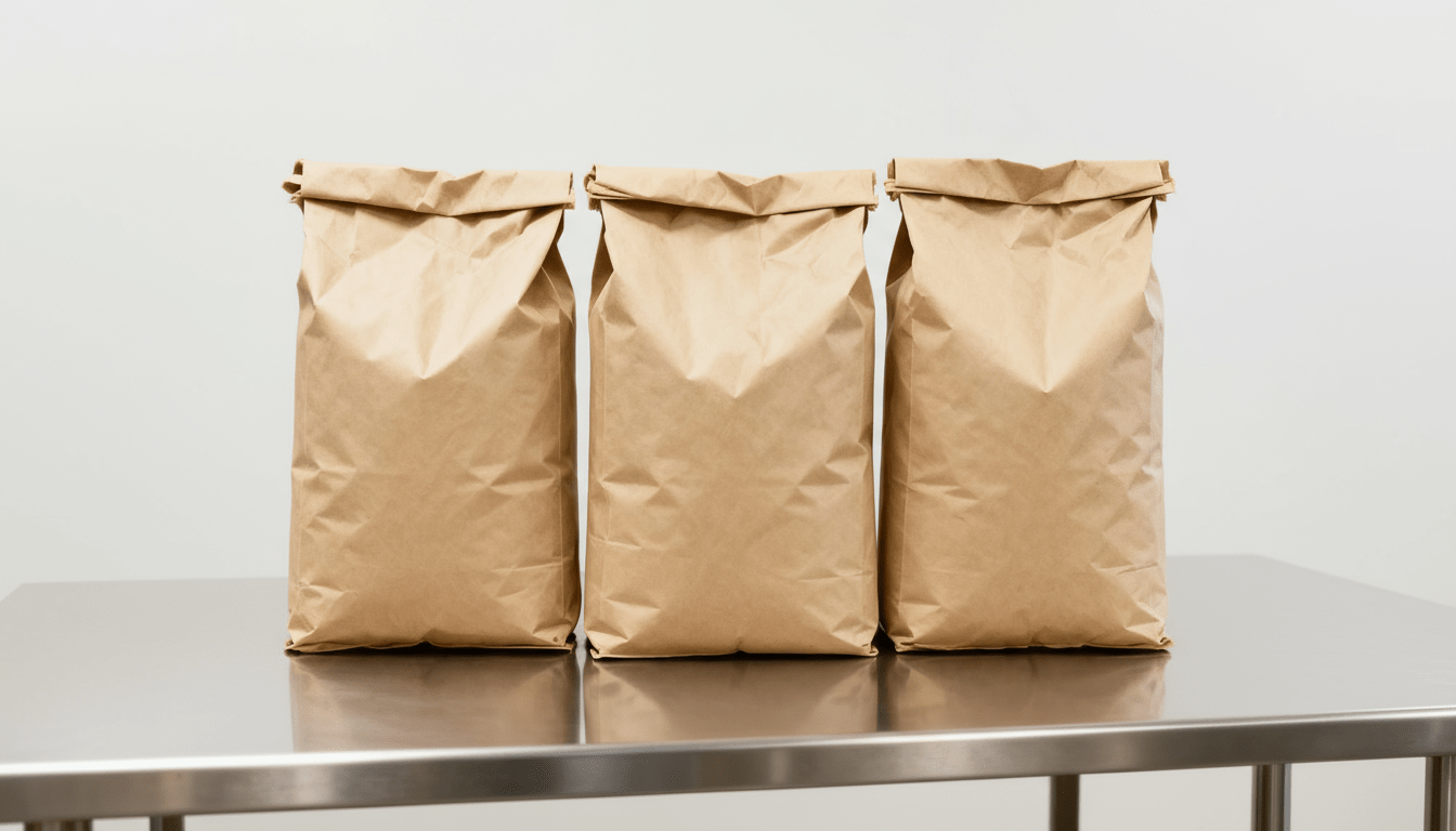 Gebinde aus Glas, Kunststoff und Kraftpapierbeutel