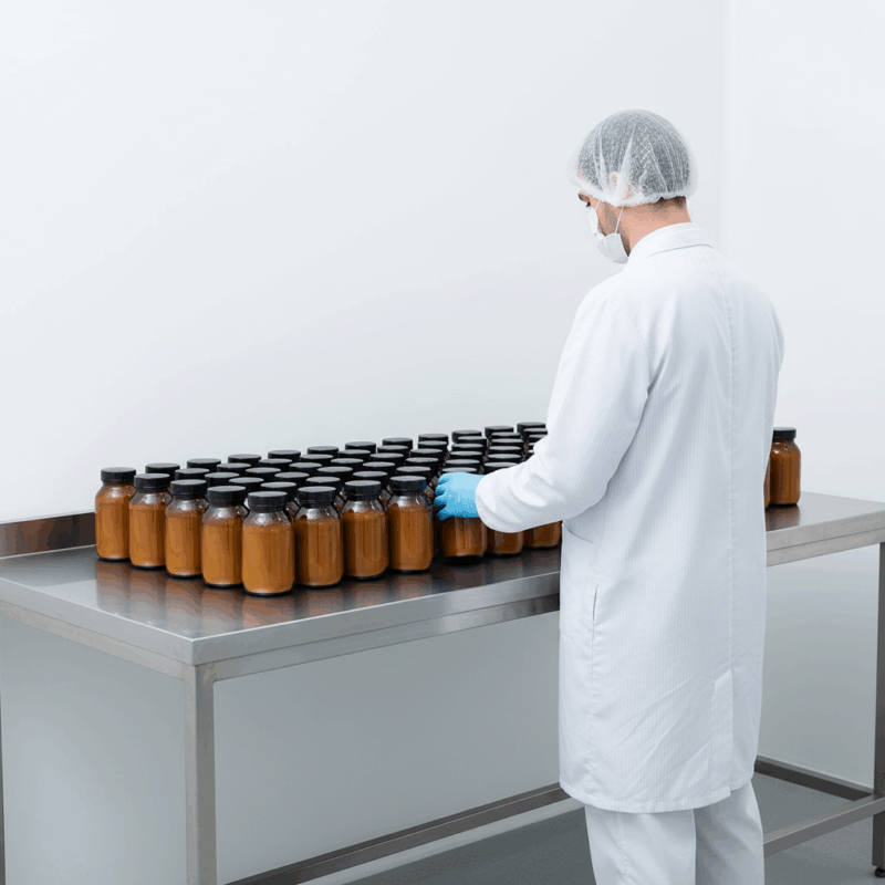 Wir begleiten Sie in jeder Phase – von der Rezepturentwicklung, über die Rohstoffbeschaffung bis hin zur Abfüllung, Etikettierung und Verpackung.